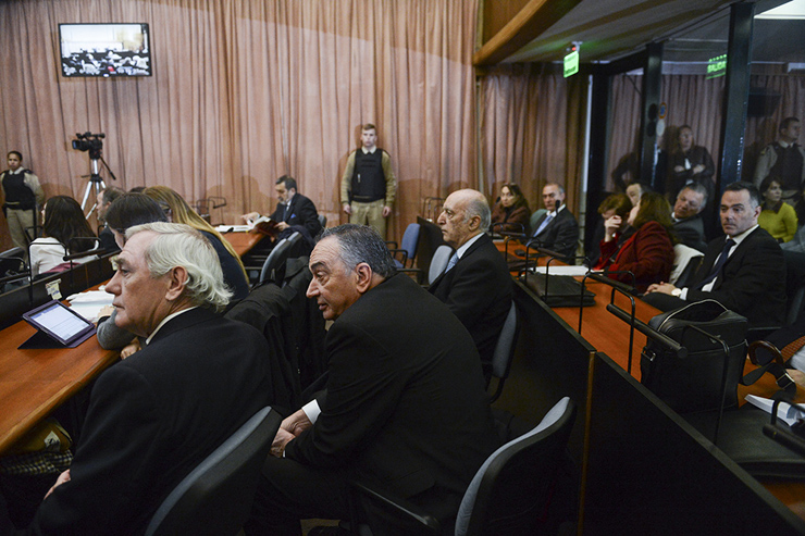 Detrás quedaron el ex comisario de la Policía Federal Jorge Palacios, junto al ex titular de la DAIA Rubén Beraja, quien es defendido por la abogada Valeria Corbacho.